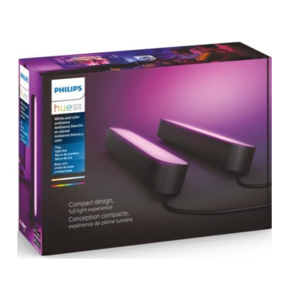 Philips Hue Smart Play Light Bar Base Kit, Black – White & Color Ambiance LED Color-Changing Light – 2 Pack – Requires Bridge – Control with App – Works with Alexa, Google Assistant and Apple HomeKit