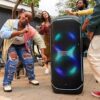 The JBL PartyBox Ultimate can cover a massive space—we’re talking two basketball courts—with superior Original JBL Pro Sound. Featuring two drivers and mid range speaker to deliver louder sound. Dual tweeters and a pair of subwoofers means there’s going to be more than enough bass for even the most dedicated fans, while Dolby Atmos* provides immersive 3D spatial effects. This is the kind of thunderous sound you’ll not just hear, but feel. * A subscription to a high definition music service is required in order to listen to immersive music in Dolby Atmos. Please check subscription fees in your region.